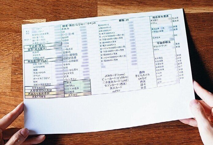 「家計簿の代わりに、年初に1回だけお金の使い道や貯蓄などをすべて書き出した一覧表を作成。このとおりに使えば、自然と黒字になって貯まるという、最もシンプルな方法です」。