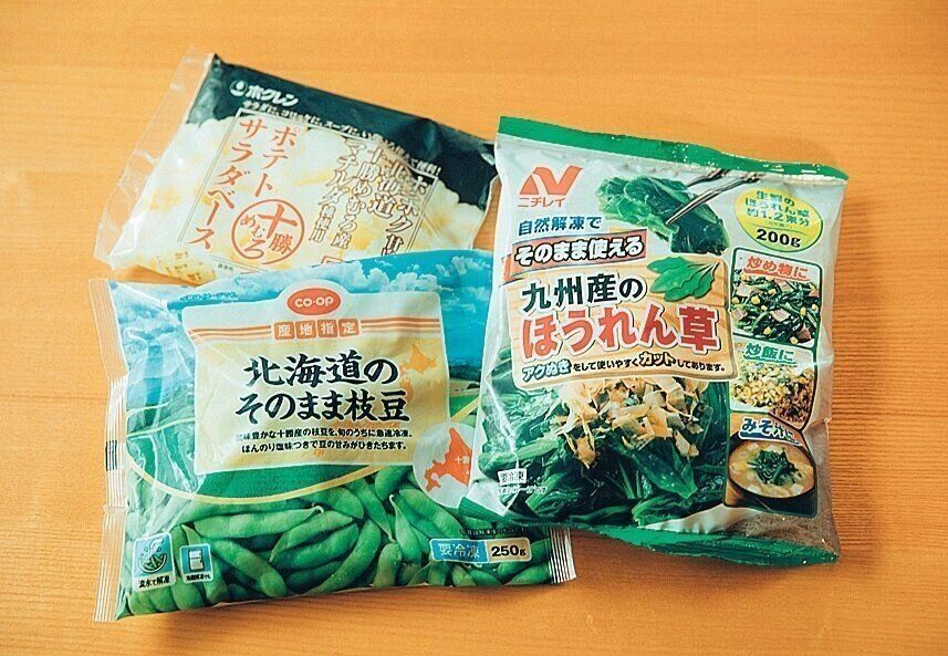 冷凍野菜は必要量だけ使え、保存がきくのでお得。「ポテトサラダベースは、多様に使えて便利!じゃがいもを腐らせることもなくなりました」。