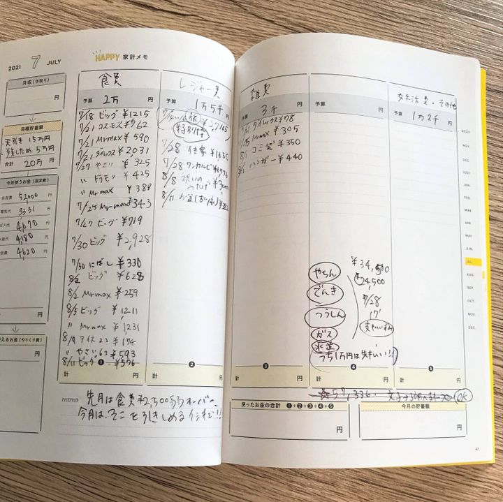 ・月に1回夫と家計簿を見直す時間をつくっている