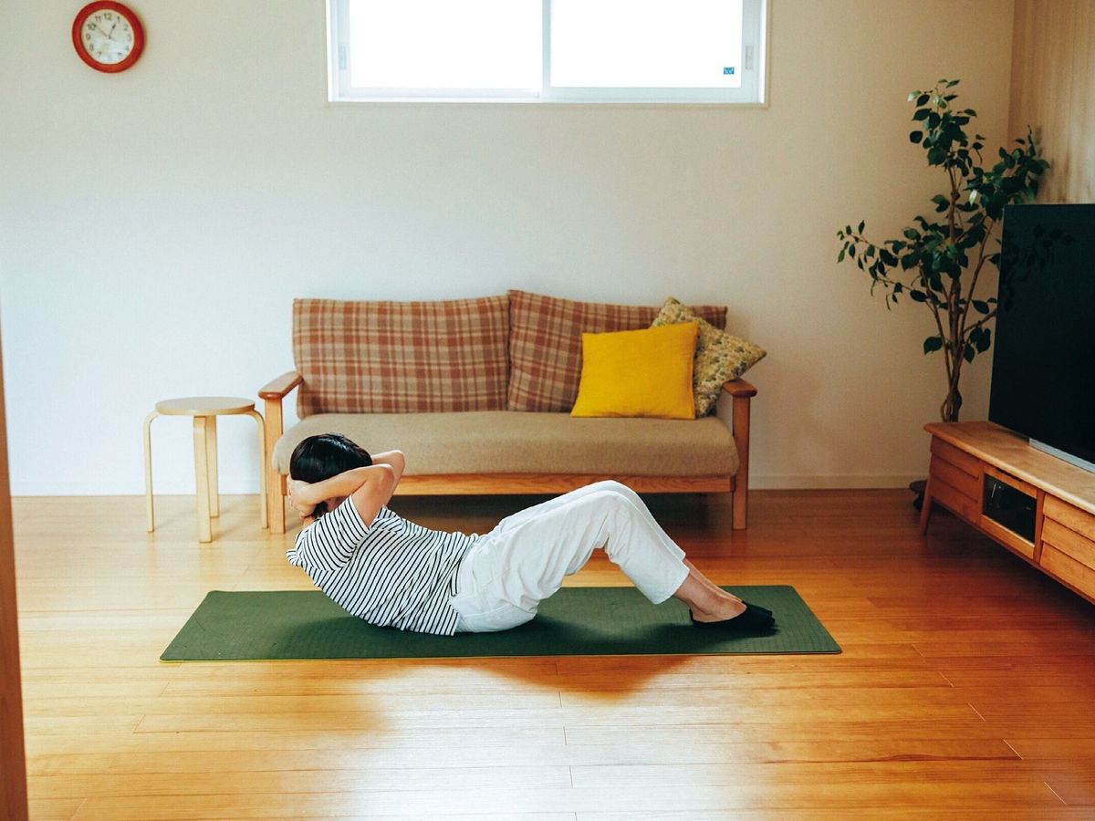 腹筋は朝晩5分ずつ各100回が日課。ほかにもテレビを見ながらストレッチをしたり、歯みがきしながらスクワットをしたりと「ながら運動」をすることで無理なく習慣化できました。