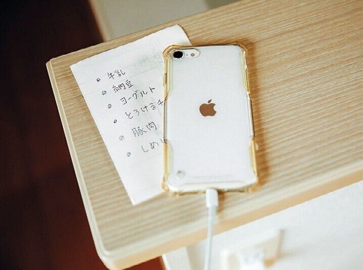週1回のまとめ買いに備えて必要な物はメモしておき、買い物時に忘れずに持って行けるよう、スマホと一緒に置いておきます。