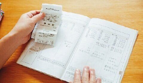 ノートにレシートをはさんでおいて、日曜日に支出を書きます