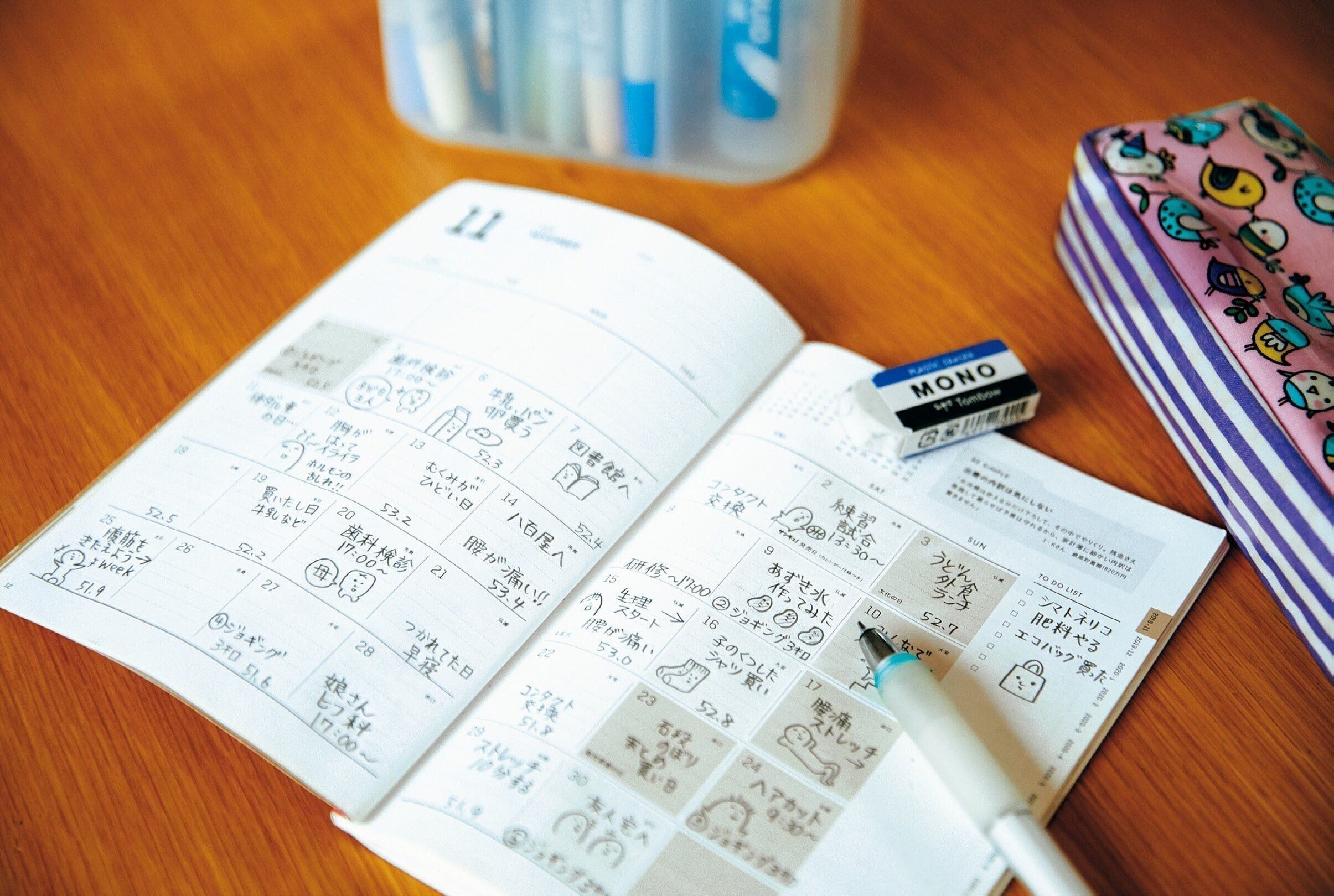 スケジュール欄に体調の変化を書き込んでみたら、疲れや不調が続くとムダ買いが増えることに気づきました。不調の原因やどんな運動が効果的かもわかる今は、家計も万全に!