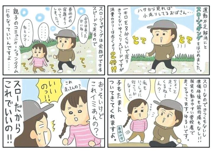 小走り程度の「スロージョギング」なら気軽に始められるし、長続きします。外を走ることでストレス解消になるようで、以前は時々していたストレスによるムダ買いがなくなりました。