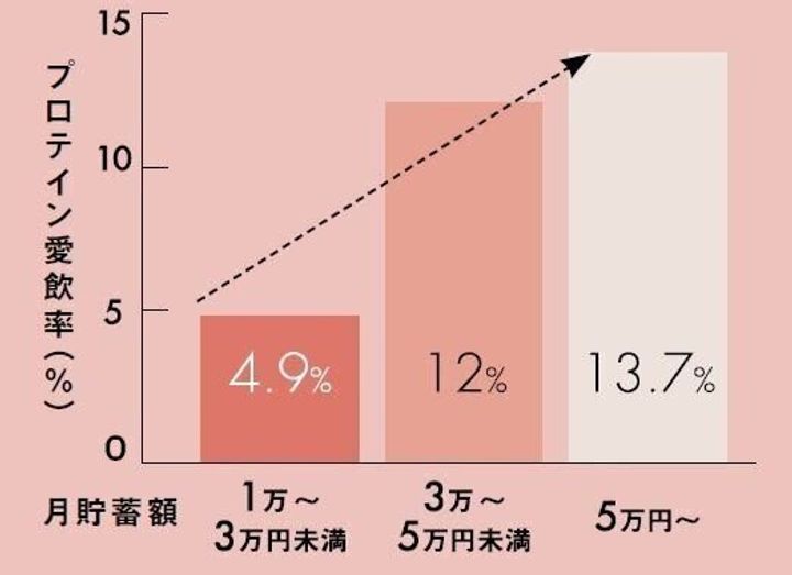 プロテインの愛飲率が上がると、月貯蓄額も上がることが発覚!