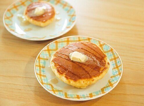 休日の朝食は、子どものリクエストでホットケーキを。「市販のホケミを店風に焼く方法をネットで検索。お金をかけずに少しの手間で格上げするテクは、毎日をより充実させるコツです」。