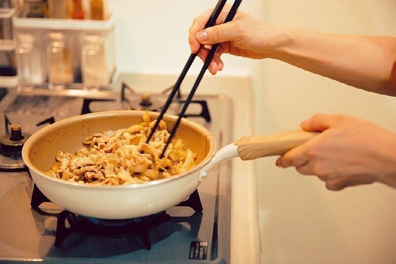 フライパンが焦げつくと、料理や洗い物のやる気が下がって外食に逃げたくなるから、焦げにくいと話題の物に買い替え。フッ素のはがれに、1年保証がついているのも決め手。