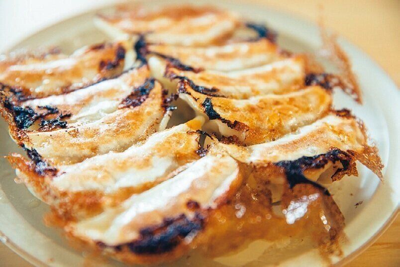 たれいらずでおいしい!「美食点心ぎょうざ館」のにんにくたっぷり黒餃子。