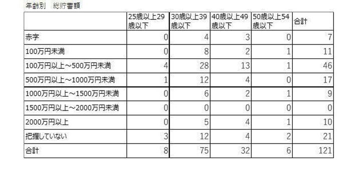 年代別で比べても、「100万円以上~500万円未満」の世帯が年齢問わず多く、意外にも貯蓄額に対して「把握していない」という人も多いようでした。また、30代~40代に「赤字」が集中しています。