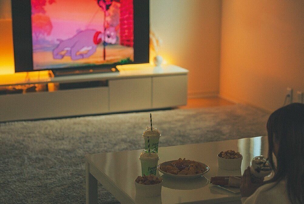 ネットでLEDテープライト(1m約3000円)を買ってテレビボードの裏に貼れば、家での映画鑑賞が盛り上がり、レジャー費の削減に。100均のかわいい皿やカップにおやつを用意して、値段以上の特別感を味わいます。