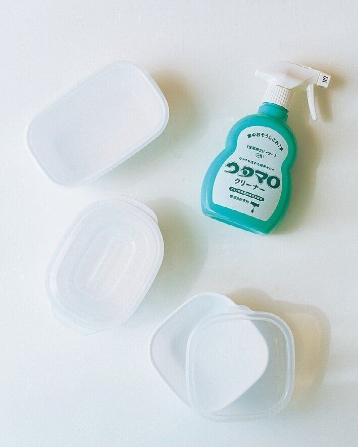 場所専用、用途専用の物を買いそろえると、出費が増えるし使い切れないことも。キッチンや風呂など家中で使える洗剤※や、皿にも保存容器にもなる100均の器など、1つ2役以上の物を選んでいます。