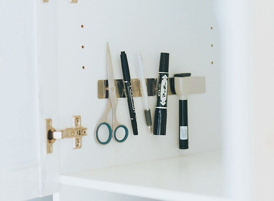 かわいいから、いつか使うからと、必要以上に買いがちな文房具。100円のマグネットシートで浮かす収納にしたら、物と量を厳選できるし、元に戻しているかひと目でわかるのでダブり買いがなくなりました。