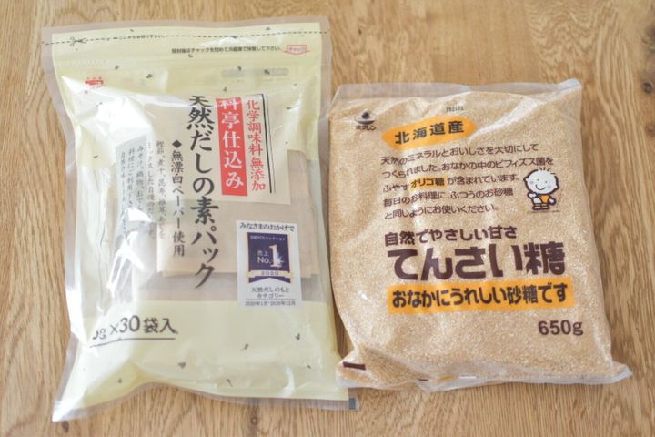 毎日のお味噌汁の味の決め手となるだしパックやオリゴ糖が含まれてお腹にやさしいてんさい糖は割高でも購入するようにしています。