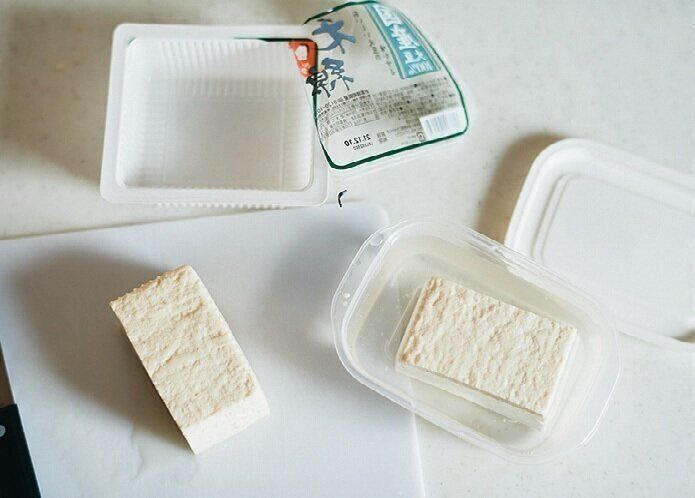 豆腐はいちどに使い切れなくても、水につけて何日か保存しておきます。小サイズの2個パックより、大サイズ1パックを買って分けて使うほうが断然安いし、ゴミも減らせて◎。