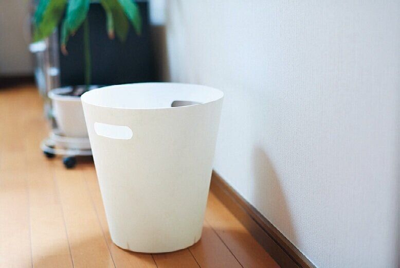 ゴミが増えると、不用品だらけだった過去を思い出し、気持ちがザワザワ。ゴミ箱はあえて小さくし、白さを保つことで、物をちゃんと選んで買うよう意識するように。