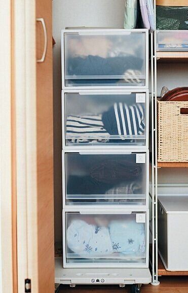 夫以外の4人の服は、1人1引き出しのみ。「幼稚園は制服があるし、娘もお気に入りしか着ないので、3パターンあれば充分」。