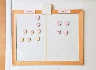 ボードの左側に、1週間にやるべきことを書いたマグネットを。「終わったら右に移動。できたことが見えると頑張れるみたい!」。