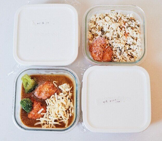 ピラフやカレーは多めに作り、べんとうとして冷凍。「出勤が不規則な夫も冷凍なら持参しやすく、ランチ代の節約に。食べるときレンチンしやすいよう、ラップを掛けてからふたを」。