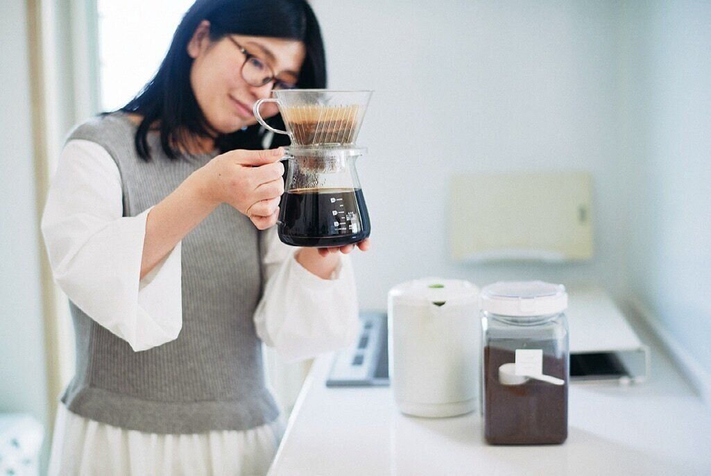 コストコで安く買った豆で、アイスコーヒーを作り置き。「1杯ずつ作るより効率よく、夫も自分で水筒に入れて仕事に持参してくれます」。