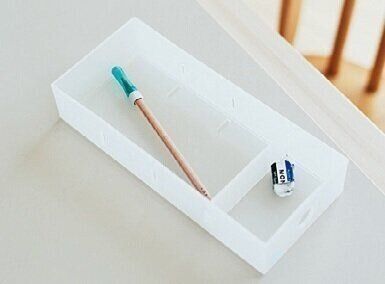 2本以上あると遊びだすから、鉛筆は1本しか入れないルール。「無印良品の引き出しを筆箱代わりにして、出す・しまうもラクに」。