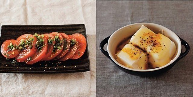 トマト(大)1個の場合、砂糖大2、しょうゆ大1、ごま油大1を混ぜたたれをかけ、刻みねぎと白ごまをパラリ。トマトの酸味と甘めのたれが合うんです。トマトが苦手な人にもおすすめです。
