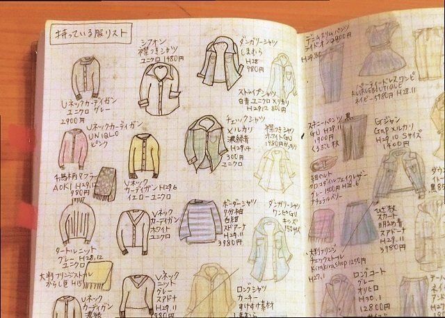 買った服を簡単にイラスト化。似たような服をダブり買いしなくなり、ムダな出費をカットできます。価格や購入先、感想も買いておくと、メルカリなどで売るときも、細かく情報を記入でき、高く、早く売れるようになります。