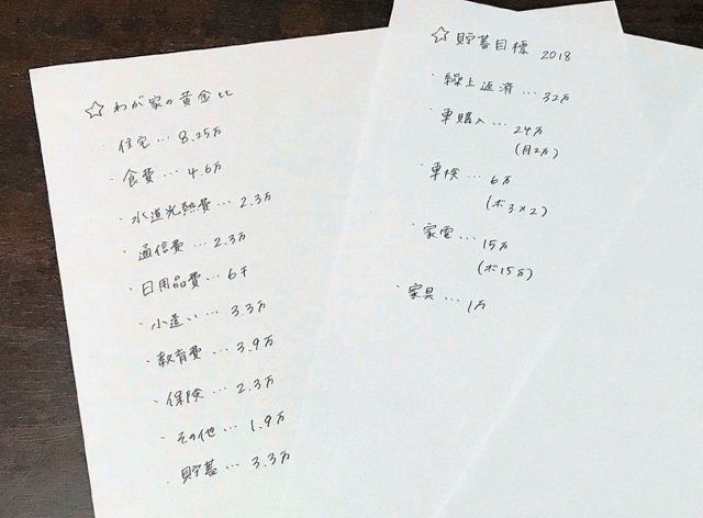 ⇒A4用紙。家計や貯蓄目標が変わったら新しく書き換えます