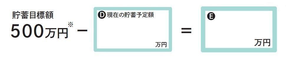 目標額から、現在の予定貯蓄額を引いた数字が、不足額(E)になります。