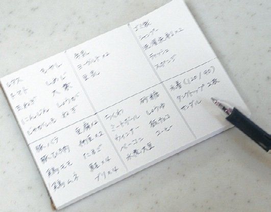店の配置に合わせて買い物メモを作成。誘惑に負けません。