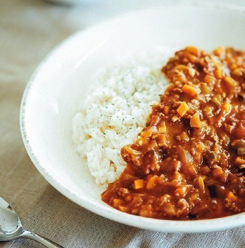 「冷蔵庫のひき肉と残り野菜を炒め、トマト缶で煮込むキーマカレーは、朝食やランチのドリアにしても家族が大喜び。買い物を1日延ばせます(笑)」