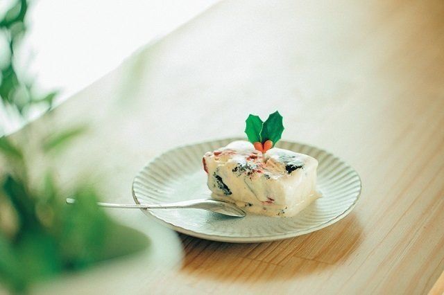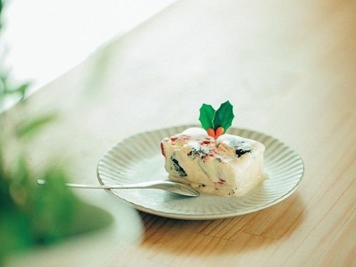 高いクリスマスケーキはやめ、手作りのアイスケーキに。「バニラアイスに、砕いたオレオと冷凍ベリーを混ぜて固めただけ。息子はこっちのほうがいいと、むしろ喜んでくれました!」