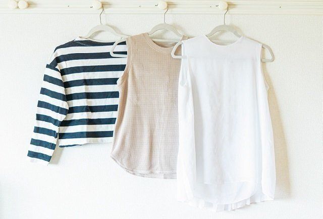 「服は少ない数を着回すほうが、おしゃれのしがいがあるし着倒したときの達成感も味わえるんです!」。白やベージュ、ボーダー柄は、どんなアイテムにも合い重宝します◎。