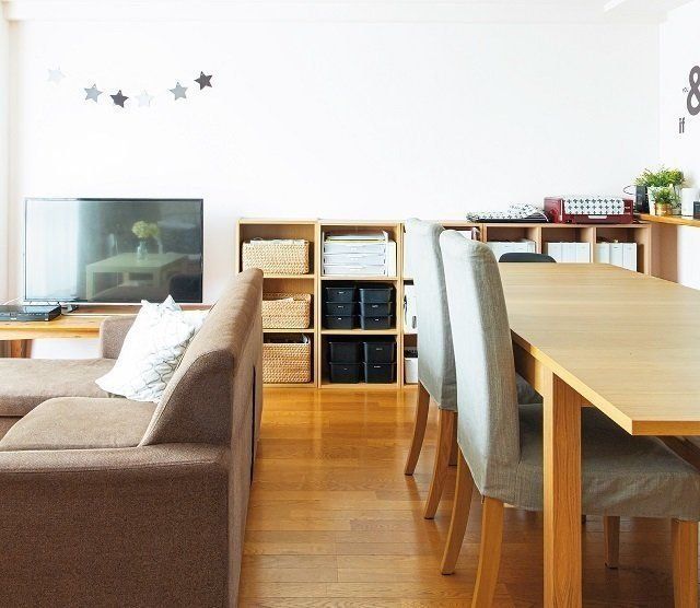 リビング&ダイニングは家族の憩いの場だから、物を置くのは最小限のルールに。1部屋に集まって過ごせば、楽しいし冷房や暖房費の節約にも。家が居心地いいので外食やレジャー欲が減って、予定外の出費も減りました。