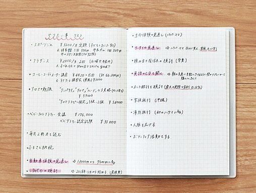 趣味でやりたいことも、家計の見直しでやりたいことも、思い立ったら全部メモ。あとで金額などを調べておき、家計に負担のないタイミングで順番に実行します。