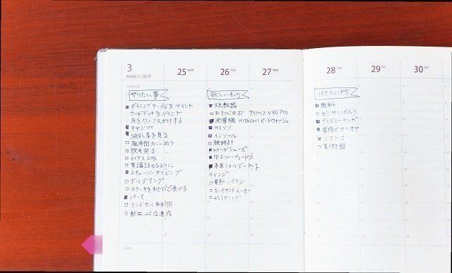 かなえたいな、と思ったことは手帳にメモ。「眺めるだけで前向きになれるし、ムダなお金を使いたくなくなる。引き締め効果大です」