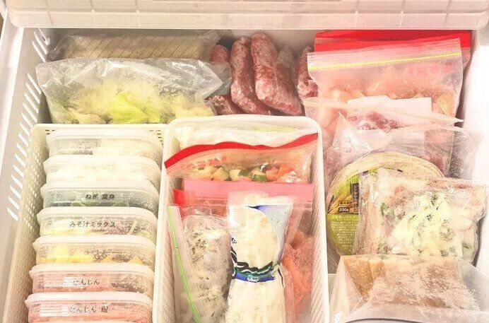 海老原さんのイチオシ方法は、ごはんづくりのついでにできる野菜の冷凍保存です。たとえば、今日の夕食につかうキャベツを切るついでに、冷凍保存する分も切っておけばいいだけ。水気をしっかりときってから保存袋に入れることがポイントです。ほとんどの野菜は生のまま冷凍が可能なのだそう。キャベツ、玉ネギ、にんじん、大根、キノコ類などもOK。次につかうときは、これらの冷凍野菜でパパっと調理。使い切れずに食品ロスになってしまうことも防げます。