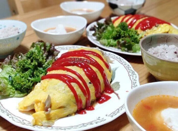 写真は、冷蔵庫に残っている野菜が使いきれる「野菜オムレツ」です。ひき肉にキノコや千切りにしたタマネギ、ジャガイモなどの野菜を、塩、コショウ、酒少々で炒めて卵でくるめばできあがり。具が残ったら、ソース少々で味つけをしてご飯にかけたり、食パンにのせてチーズと焼いてもおいしいのだとか。5人分のオムレツと朝食のおかず1品が500円以下でできました!