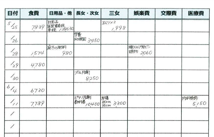 結婚当初から家計簿はつけていたものの、ただ書いているだけで、支出額は確認せず。「生活費もたりなくなったら下ろし、予算は決めていませんでした」。