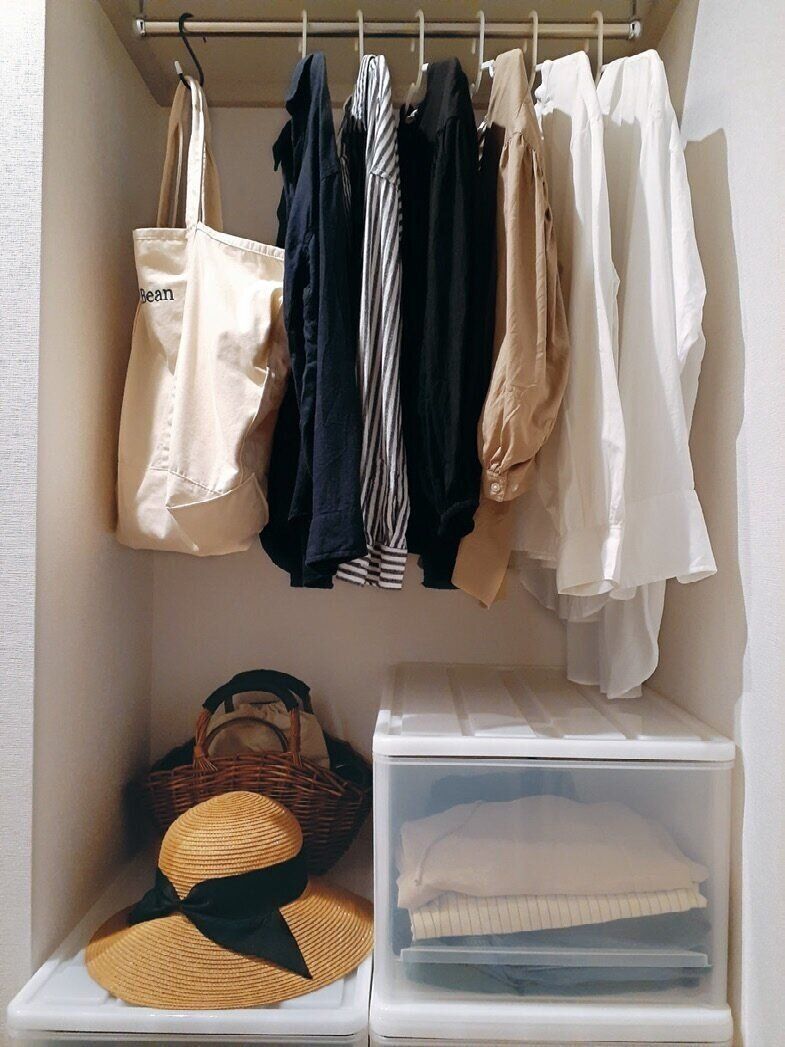 新居への引っ越しを機に、不用な服を処分。「結局、残った服は動きやすい定番品ばかり。今の自分の生活に合う服の基準がわかり、もう必要以上に買わなくなりました」。