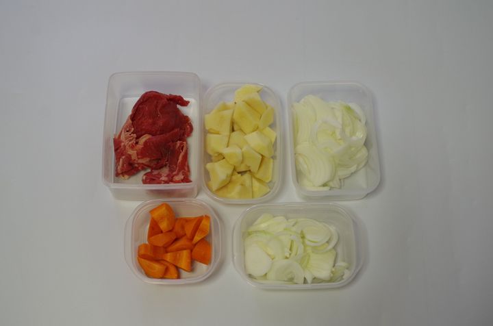 カレールー6つ分の材料です。わが家のこだわりは、玉ねぎが多いということ。甘味をつけるのにつながります。