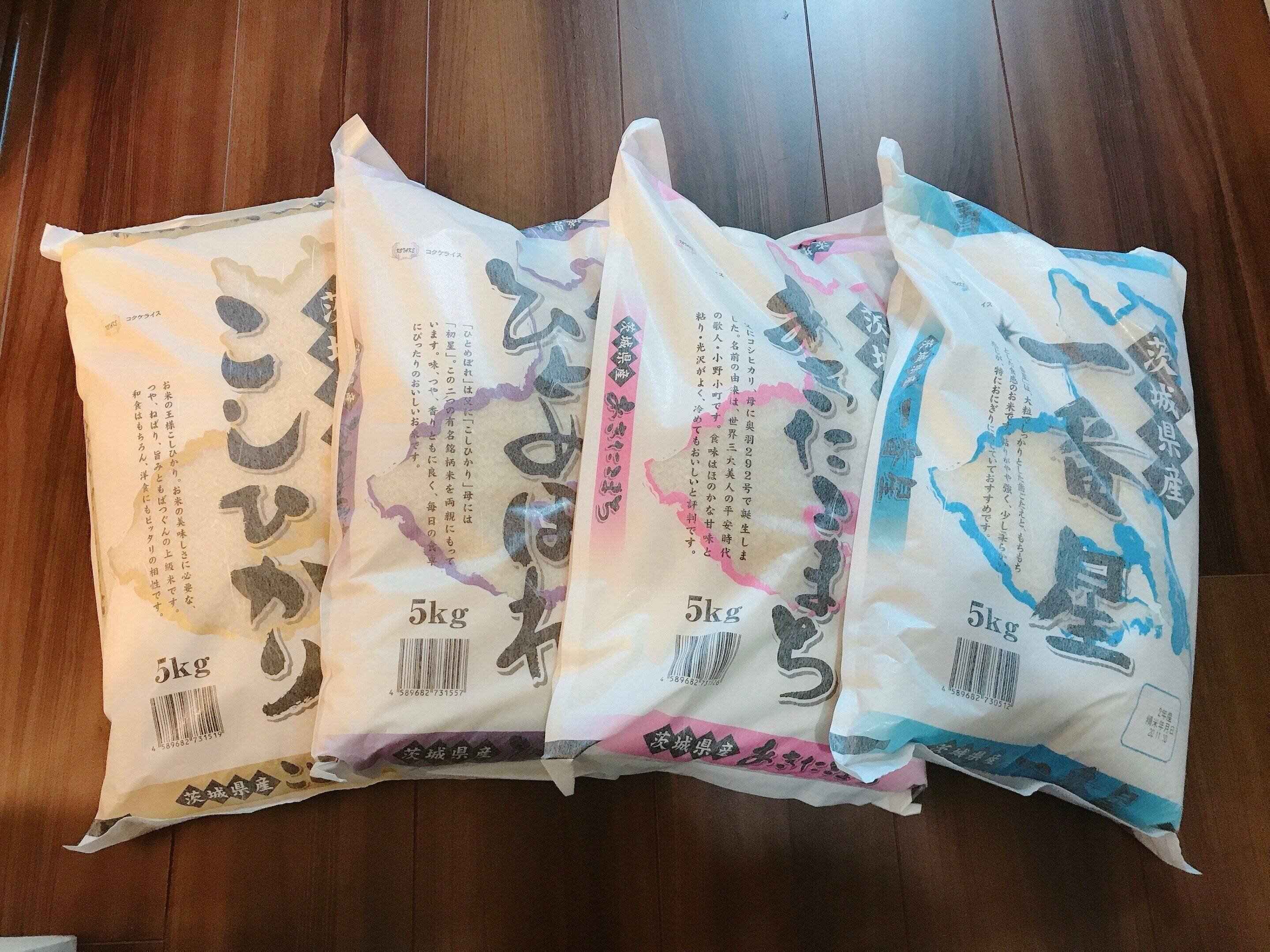 今年注文したお米は、茨城県産のお米を4種食べ比べできるセットです。