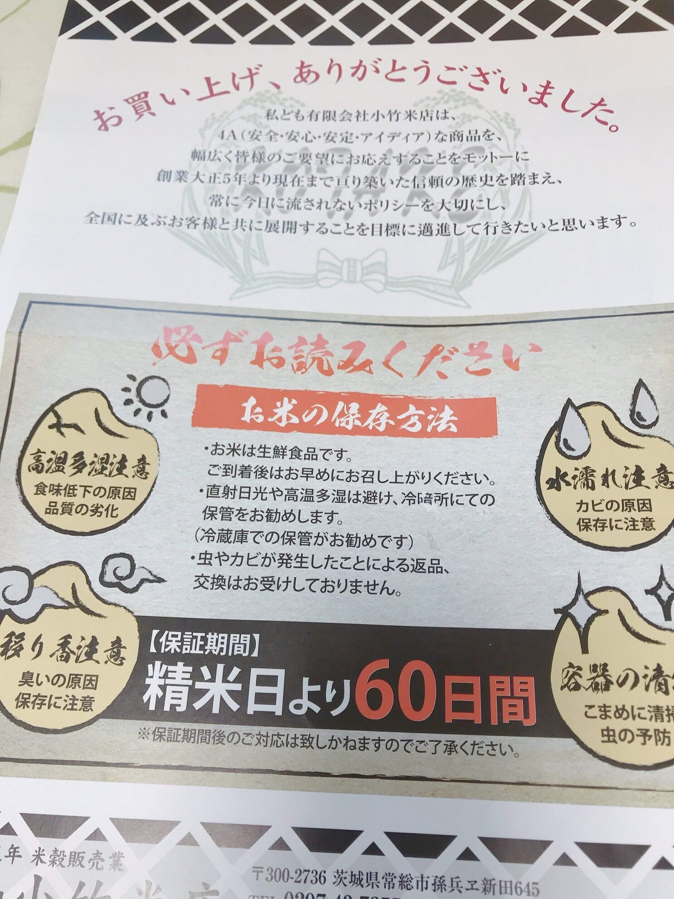 お米の保存方法などが書かれたチラシも一緒に入っています。