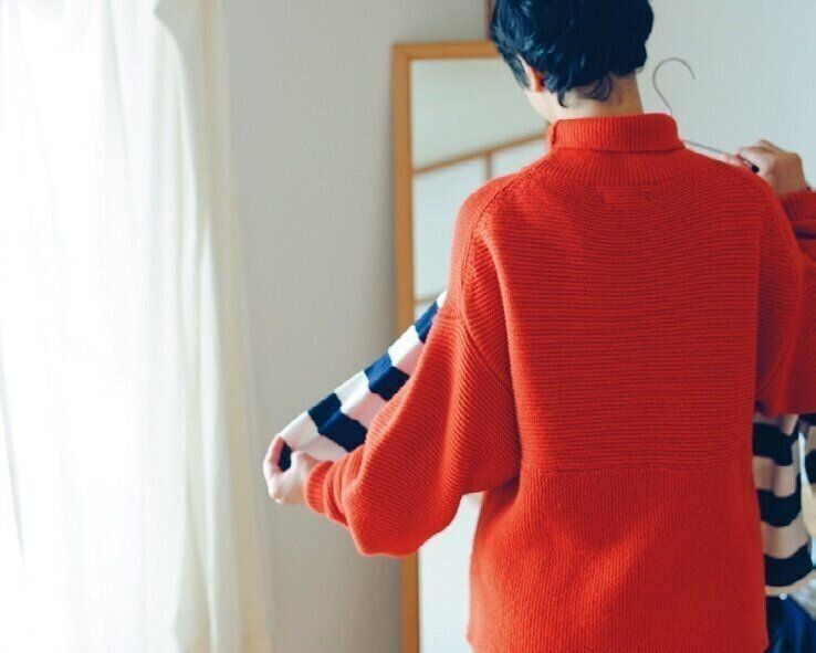服を買いたくなったら、手持ちの服を体に当ててみます。「何となくお店に行くと、理由をつけて買ってしまう。"本当に必要?"など家で自問してから行くと冷静になれ、単なる物欲ならセーブできます」。