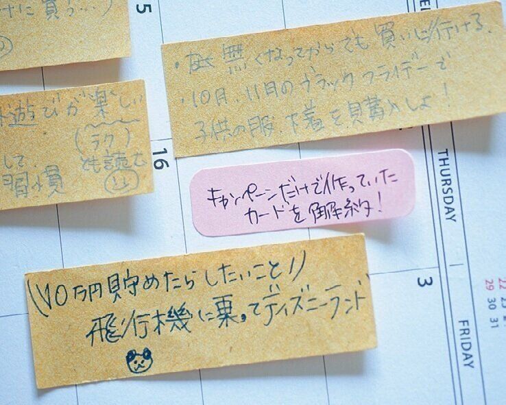 やりくり目標を付箋にメモ。1分で気が引き締まる!