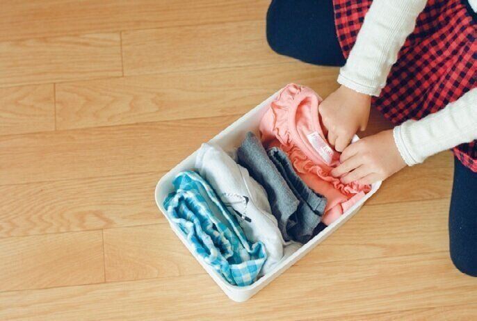 登園用の服は、丈夫な物を上下それぞれ3着だけ。毎日洗濯して、とことんローテします。「多少割高でも、すぐ傷む服をたくさん買うより節約になります。あれこれ選ばなくてすむから、娘の朝の支度も速くなりました♪」。