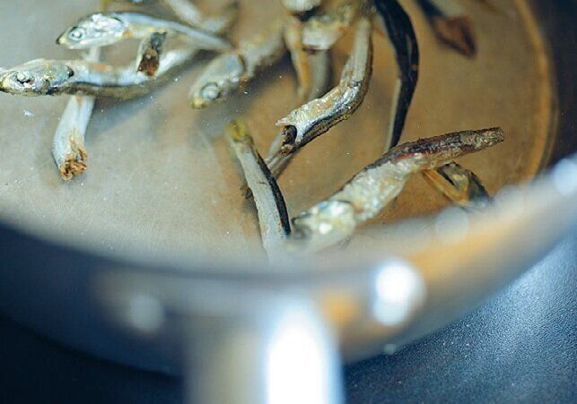 帰宅したらすぐ鍋に水と煮干しを入れてだしをとります。「娘が大のみそ汁好き。汁もので十分、野菜がとれるし、だしをとる間に簡単なおかずを一品作れば、とりあえず形に。自炊が無理なく続くスイッチです」。