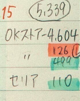 ふだんの家計簿は、使いすぎに注意したい「やりくり費」のみ記入。出費した日付に店名と金額を書けば終了。「以前は商品名も細かく記録しましたが、今はだいたいの支出を把握できたのでこれでOK!」。