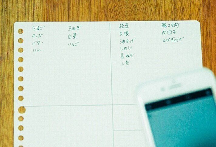 週1のまとめ買いは、在庫チェックからスタート。「種類が多い食材や日用品は、フォーマットを作っておけばサクサク確認できます。たりない物だけ買えばいいので頭も疲れず、自然と出費がダウン♪」。
