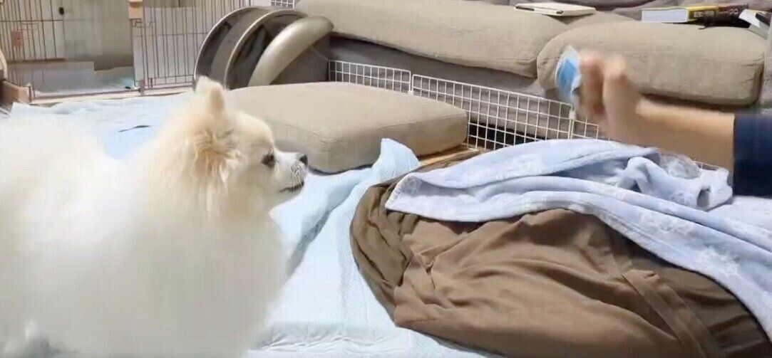 手品に驚くわんこ。人間みたいに二度見する完璧なリアクションに「かわいい」が止まらない!