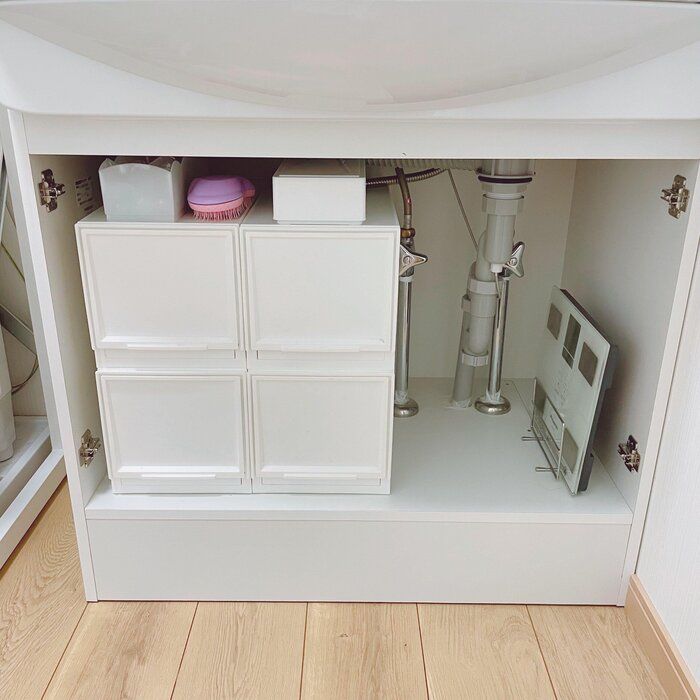 普通の洗面台下収納、扉を外したら使いやすくなった!